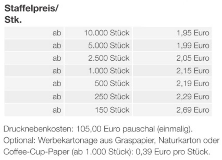 Eine sympathische Präsent-Idee! Die beliebten Selection Mini werden schon ab kleinen Stückzahlen rundum individuell bedruckt. Das perfekte Firmenpräsent!Produkt: Individuelle Werbekartonage mit süßer FüllungMaße: ca. 50 x 40 x 85 mmNachhaltigkeit: Für jede Bestellung mit uns wird ein Baum über GROW MY TREE gepflanzt. Wir verwenden FSC ® -zertifizierten Karton aus nachhaltiger Forstwirtschaft und anderen kontrollierten QuellenInhalt: Vollmilch Schokoladenmischung ca. 25g, bestehend aus 2 Stück Schokoladen-Eiern, bunt gemischt und einem Osterhasen von KlettBedruckung/Material: 4-farbiger Druck auf grafischem Premium-Karton (FSC ® -zertifiziert). Optional auf Graspapier, Naturkarton oder Coffee-Cup-PaperHaltbarkeit: mindestens bis 30.06. diesen JahresLieferzeit: ca. 15 Arbeitstage ab Druckfreigabe oder nach AbspracheMindestbestellmenge: 150 Stück