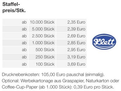 Preisliste Werbe-Hase mit Schokoladenmischung von Klett mit Logo Details