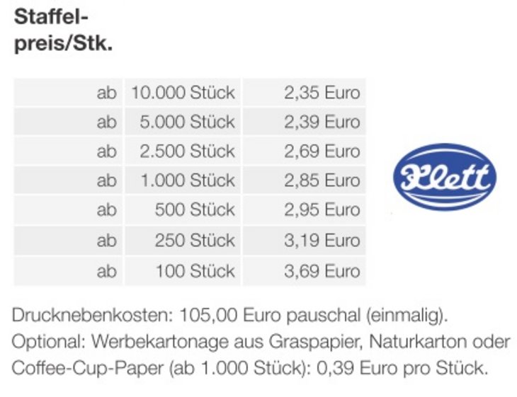 Preisliste Werbe-Osterei mit Schokoladenmischung von Klett mit Logo Details