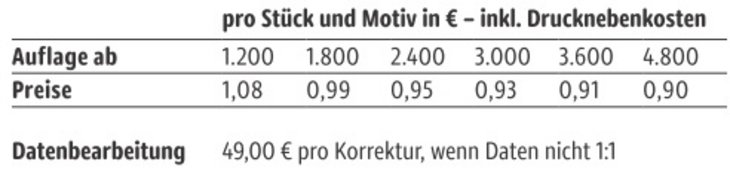 Preisliste 3er Lindor Mini-Eier im Papiertütchen mit Logo