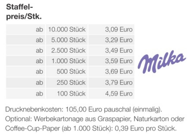 Preisliste Premium Osterei mit Milka Schokoladenmischung mit Logo Details