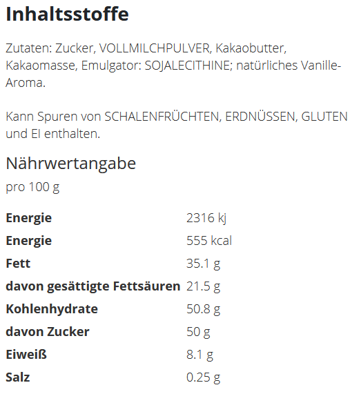 Inhalt: 1 Stück ca. 50 gGeschmack: Edel-VollmilchschokoladeFarben bunt gemischt: blau, rosa und weiß Format: 70 x 35 x 90 mmVerpackungseinheit: 50 StückDruck: 4c EuroskalaHaltbarkeit: 5 Monate bei sachgerechter LagerungLieferzeit: ca. 20 Arbeitstage nach DruckfreigabeMindestbestellmenge: 150 Stück