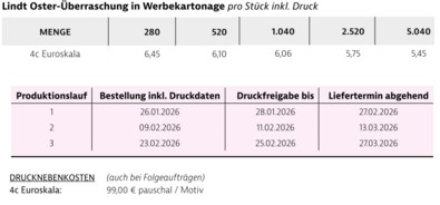 Preisliste Lindt Oster-Überraschung in Klappwürfel mit Logo Details