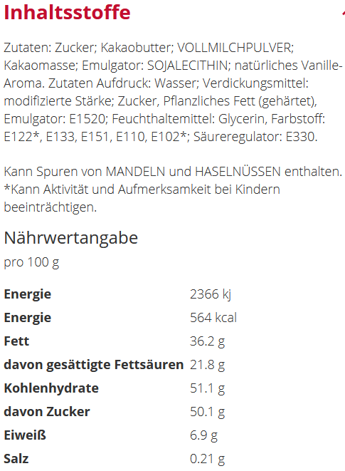 Inhalt: 1 Stück ca. 80 gGeschmack: VollmilchschokoladeFormat: Höhe 135 mmWerbeanbringung: WerbeschildVerpackungseinheit: 13 StückDruck: 4c EuroskalaHaltbarkeit: 5 Monate bei sachgerechter LagerungLieferzeit: ca. 20 Arbeitstage nach DruckfreigabeMindestbestellmenge: 150 Stück