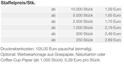 Mit diesem Präsent haben Sie bestens vorgesorgt! Zum Verschenken, Verteilen und selbst Genießen: Feiner Osterhase aus Vollmilchschokolade in individuell bedruckbarer WerbekartonageProdukt: Osterhase von Klett, in individueller WerbekartonageNachhaltigkeit: Produkt mit finanziellem Klimabeitrag, auf FSC ® -zertifiziertem Karton aus nachhaltiger Forstwirtschaft und anderen kontrollierten Quellen.Bedruckung/Motive: High-End Digitaldruck bzw. Offsetdruck, 4-farbig, ganz individuell nach Ihren Vorlagen.Inhalt: 1 Vollmilch Osterhase von Klett 40gVerpackung: 72 Stück pro Karton, 3.024 Stück pro PaletteMaße: 59 x 43 x 107 mmHaltbarkeit: Bis 30.06. diesen JahresLieferzeit: ca. 15 Arbeitstage nach DruckfreigabeMindestbestellmenge: 250 Stück