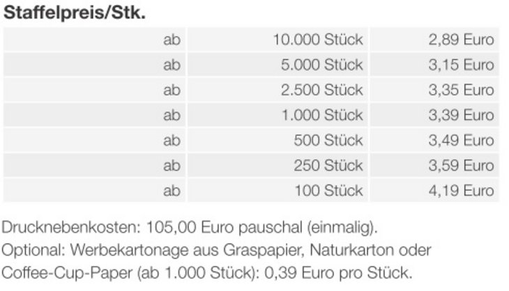 Produkt: Garantiert 6 Richtige! Feinste Premium-Schokolade, verpackt in einer individuell bedruckbaren Geschenkverpackung sorgen für genussvolle Freude bei Ihren Kunden und Kundinnen und bei Ihrem Mitarbeiterteam.Produktdetails: Feine Ostereier in einer individuellen Präsentverpackung.Maße: ca. 94 x 64 x 42 mmNachhaltigkeit: Produkt mit finanziellem Klimabeitrag, auf FSC ® -zertifiziertem Karton aus nachhaltiger Forstwirtschaft und anderen kontrollierten Quellen. Inhalt: 6 Stück (ca. 60g) Goldene Momente, Ferrero Rocher Ostereier. Bedruckung/Motive: 4-farbiger Druck auf grafischem Premium-Karton (FSC ® -zertifiziert). Optional auf Graspapier, Naturkarton oder Coffee-Cup-PaperHaltbarkeit: Bis mindestens 30.06. diesen JahresLieferezeit: ca. 15 Arbeitstage nach Druckfreigabe oder nach AbspracheZubehör gleich mitbestellen: Stabiler Einzelkarton für den Postversand an Ihre Kunden: 0,59 Euro pro Stück. Mindestbestellmenge: 100 Stück