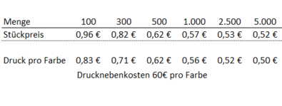 Für einfarbige Drucke oder Gravuren genügt eine 1:1 Vorlage in einem unkomplizierten Pixel-Format. (.tif, .psd, .bmp etc.). Bilder sollten stets separat als Originaldatei beigefügt werden.