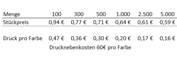 Maße: ca. 89 x 54 x 7 mmMaterial: PSGewicht: 21 gGrundfarbe: gefrostet glaskarDruckart: SiebdruckDruckfläche: 60 x 40 mm (max. 4C)Verpackungs-Einheit: 1 je Polybeutel / 50 je Unterkarton / 500 je VersandkartonMindestbestellmenge: 100 StückLieferzeit: ca. 10 Arbeitstage ab Druckfreigabe