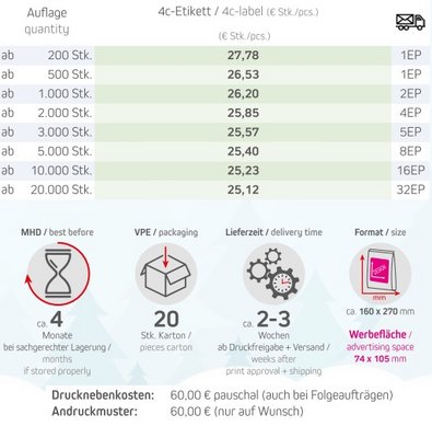 Preisliste Bio Feuergebrannte Mandeln 500g in Maxi Standbeutel mit Logo Details