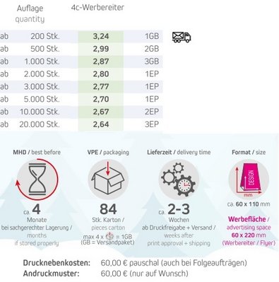 Blockbodenbeutel aus transparenter Folie. Werbeanbringung als Werbereiter in 4c individuell bedruckbar.Bringen Sie den Duft des Weihnachtsmarktes direkt zu Ihren Kunden mit unseren Bio Feuergebrannten Mandeln! Die zarten Mandeln sind meisterhaft geröstet, karamellisiert und mit einer verführerischen Mischung aus Zimt und Zucker überzogen. Diese aromatischen Leckerbissen sind der Inbegriff winterlicher Nascherei – wie frisch vom Weihnachtsmarkt oder der Kirmes. Ideal als Giveaway für Ihre Kunden, die sich nach einem Hauch von Tradition und festlichem Genuss sehnen. Mit den feinen, knusprigen Mandeln verbreiten Sie nicht nur süßen Genuss, sondern auch eine ganz besondere Weihnachtsstimmung.Inhalt: Feuergebrannte Bio Mandeln 40gHaltbarkeit: ca. 4 Monate bei sachgerechter LagerungVerpackungstym: Standbeutel mit WerbereiterFormat: ca. 60 x 110 mmWerbefläche: 60 x 220 mmLieferzeit: ca. 10 Arbeitstage ab Druckfreigabe + VersandDruckart: DigitaldruckMindestmenge: 200 Stk.Zutaten Bio Feuergebrannte Mandeln: MANDELN*, Rohrohrzucker*, Zimt*, Kakao*, *aus kontrolliert biologischem Anbau.Nährwerte pro 100g: Energie: 2037 kJ / 488 kcal, Fett: 27 g, davon gesättigte Fettsäuren: 1,9 g, Kohlenhydrate: 52,3 g, davon Zucker: 49,8 g, Eiweiß: 9,4 g, Salz: <0,01 g
