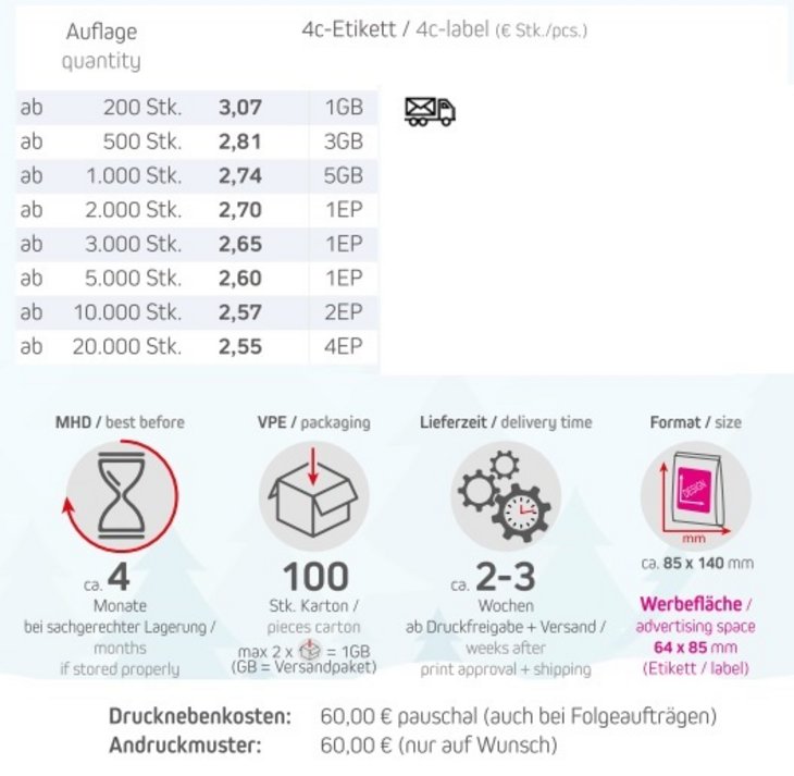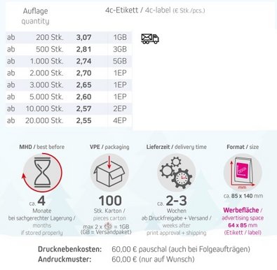 Haltbarkeit: ca. 4 Monate bei sachgerechter Lagerung