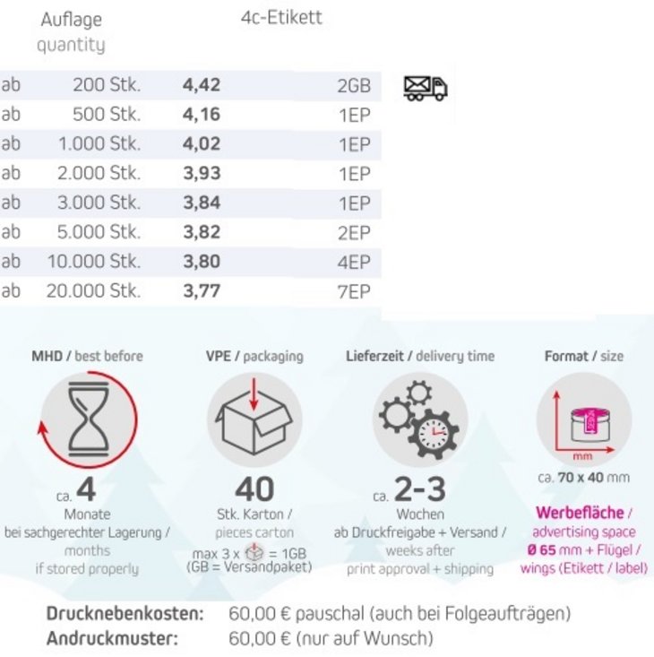 Werbefläche: 4c-Flügeletikett 119 x 65 mm