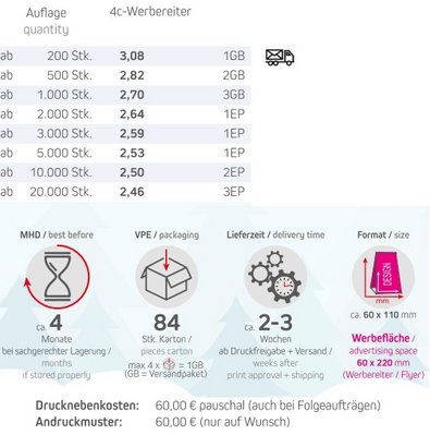 Lieferzeit: ca. 10 Arbeitstage ab Druckfreigabe + Versand