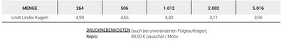 Preisliste Appventsbox Lindor Kugeln mit Logo