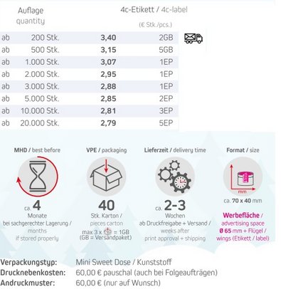 Werbefläche: Ø 65 mm + Flügel / Etikett