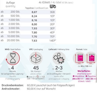 Haltbarkeit: ca. 4 Monate bei sachgerechter Lagerung