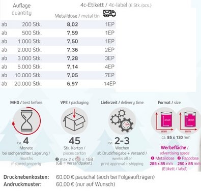 Haltbarkeit: 4 Monate bei sachgerechter Lagerung