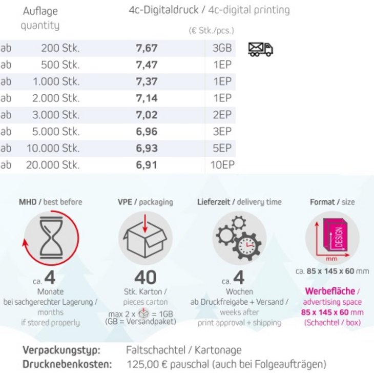 Verleihen Sie Ihrer Werbung einen festlichen Glanz mit unseren Zimtsternen! Das klassische Gebäck, umhüllt von einer zarten Eiweißglasur, sorgt für wohlige Wärme und weihnachtliche Stimmung. Mit ihrem feinen Zimtgeschmack sind sie der perfekte Begleiter für gemütliche Momente und machen sich hervorragend als Giveaway für Ihre Kunden. Teilen Sie den Genuss und lassen Sie Ihre Marke auf süße Weise in Erinnerung bleiben. Ideal für alle, die den Winter mit einer Prise Festlichkeit und einem Hauch von Tradition würzen möchten. Mit diesen Zimtsternen ist Freude garantiert – und das Teilen umso schöner.