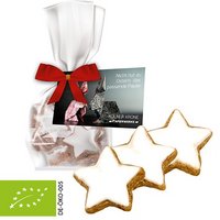 Bio Zimtsterne ca. 50g Express Standbeutel Mini mit Schleife mit Werbekarte