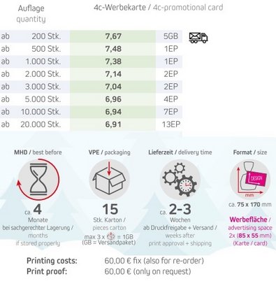 Werbefläche: Werbekarte doppelseitig 85 x 55 mm