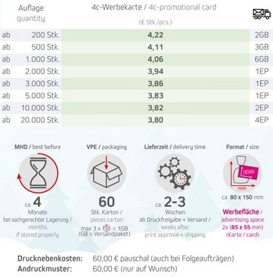 Werbefläche: Werbekarte doppelseitig, 85 x 55 mm