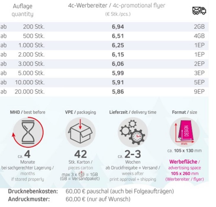 Lieferzeit: 2-3 Wochen ab Druckfreigabe + Versand