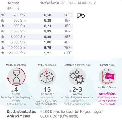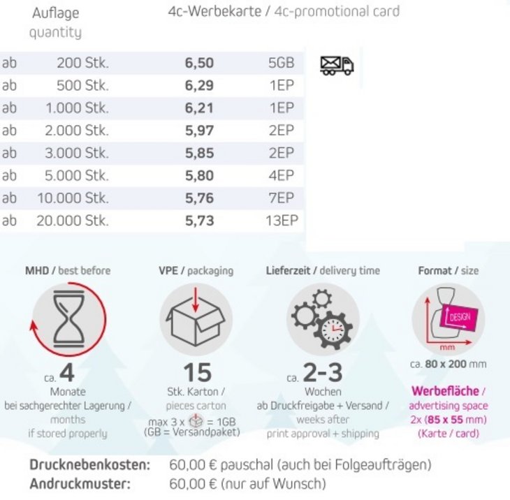 Werbefläche: Werbekarte doppelseitig 85 x 55 mm