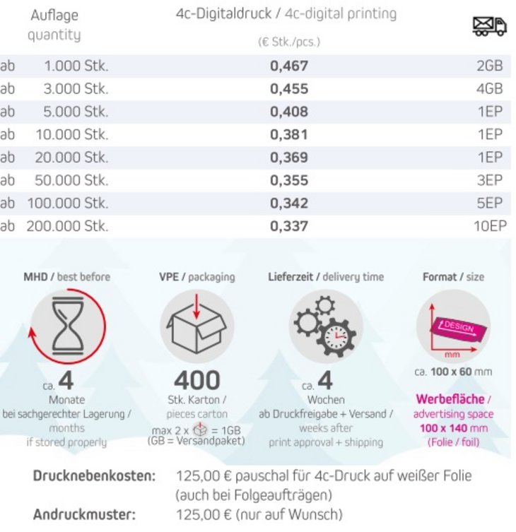 Verpackungstyp: Flowpack / transparente oder weiße Folie