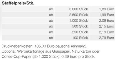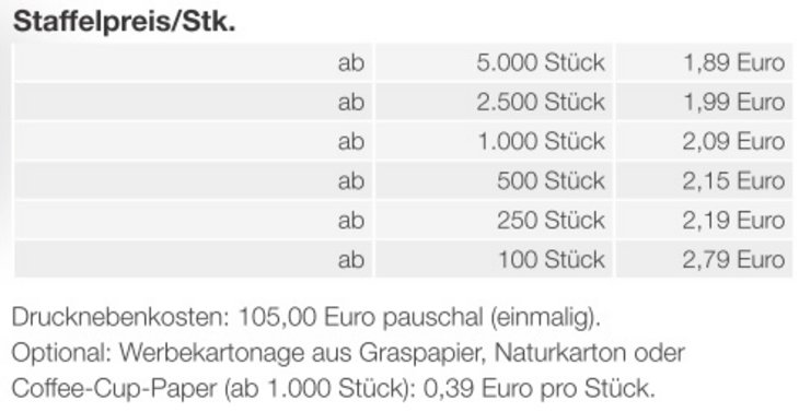 Preisliste Premium-Tee in der Werbebox mit Logo