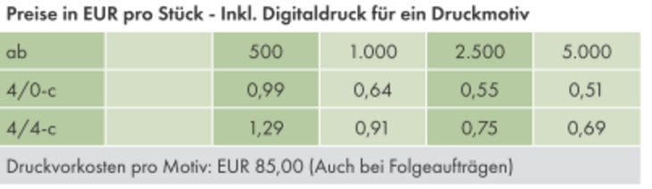 Preisliste Bierdeckel Samenpapier mit Logo