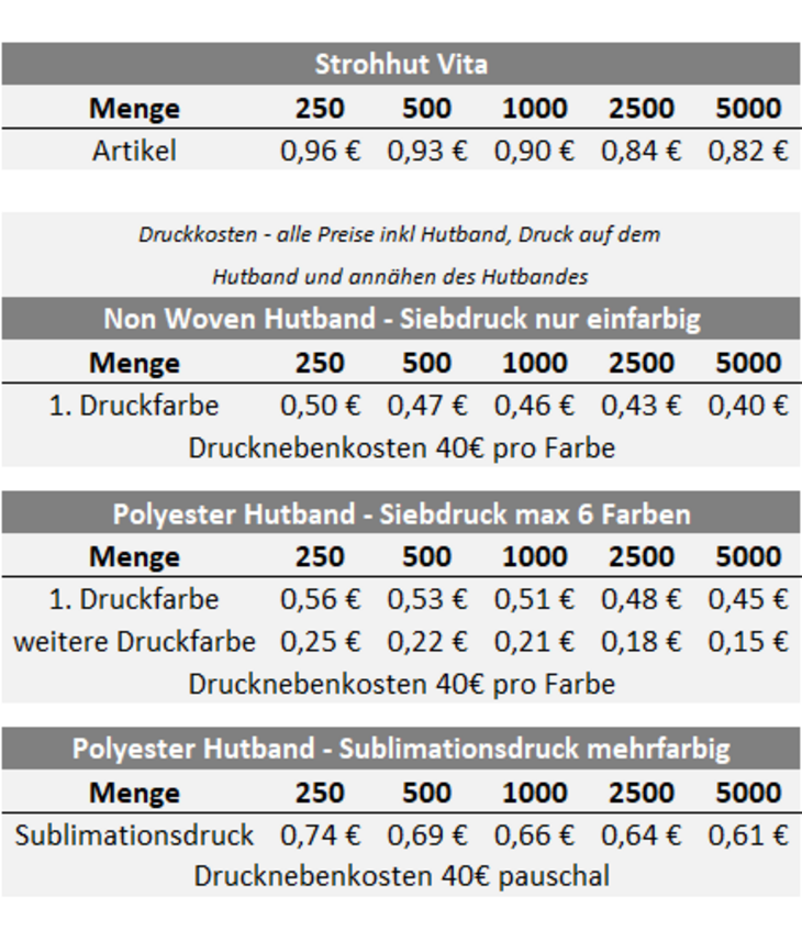 Preisliste Strohhut Vita mit Logo