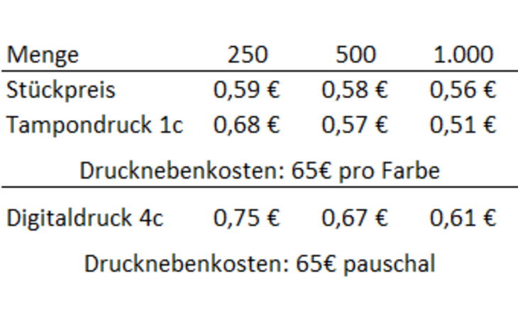 Preisliste Drehverschlussöffner mit Logo Details