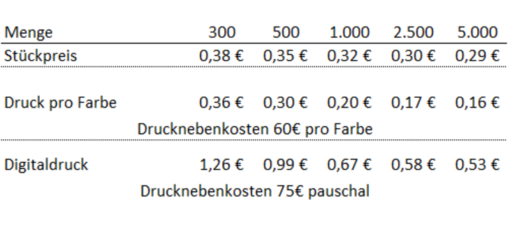 Lineal mit gedruckter 20 cm Skala auf schräg abfallender Fläche, mit TuschkanteMaße: ca. 210 x 30 x 2 mmGrundfarben: weiß, rot, grün, blau, gelb, orange oder glasklarGewicht: ca. 15g pro StückMaterial: Polystyrol (PS)Druckart: Siebdruck oder DigitaldruckDruckfläche: Siebdruck: 200 x 18 mmDigitaldruck: 210 x 30 mmVerpackungs-Einheit: 100 je Polybeutel / 1.000 je VersandkartonMindestbestellmenge: 300 StückLieferzeit: ca. 10 Tage ab Druckfreigabe