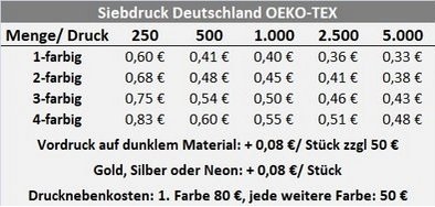 Preisliste Druck Baumwolltasche New York