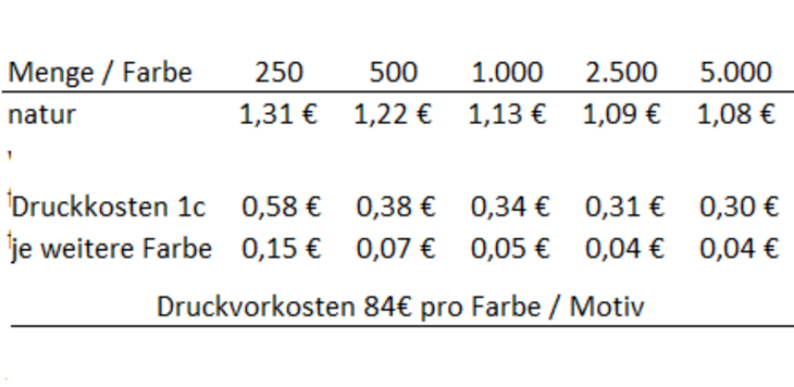 erhältliche Farbe: naturGröße der Tasche: ca. 22 x 26 cmGröße des Henkels: ca. 24 cm Material: 100 % BaumwolleGrammatur: ca. 140 g/m²Druckfläche: Siebdruck ca. 14 cm breit x 16 cm hochUrsprungsland: IndienZertifikatsnummer: FAIRTRADE • OEKO-TEX® STANDARD 100Lieferzeit: ca. 3-4 Wochen ab DruckfreigabeMindestbestellmenge: 250 Stück