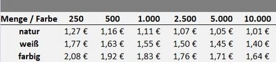 Preisliste Druck