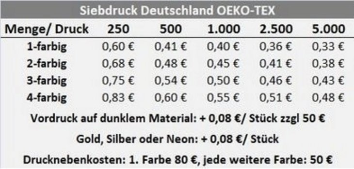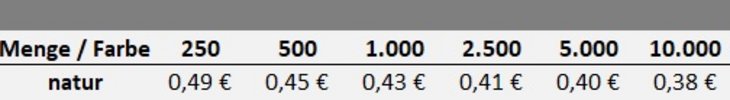 Preisliste Bio-Beutel Doha 15 x 20 cm mit Kordelzug und Logo