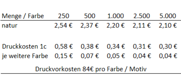 Preisliste Turnbeutel 38 x 46 cm aus Fairtrade-zertifizierter Baumwolle, ca. 200 g/m² mit Logo