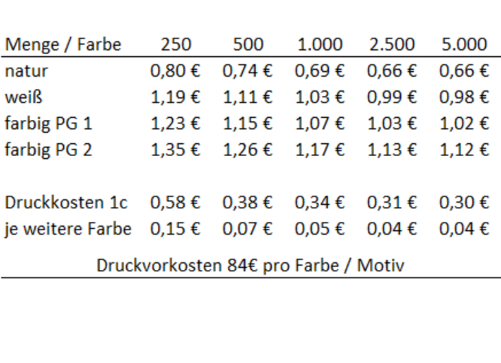 erhältliche Farben: weiß und naturFarben Preisgruppe 1: madarin, royalblau, dunkelblau, schwarzFarben Preisgruppe 2: gelb, rot, hellgrün, maigrün, hellblau, stahlgrauGröße der Tasche: ca. 28 x 32 cmGröße des Henkels: ca. 24 cm Material: 100 % BaumwolleDruckfläche: Siebdruck ca. 17 cm breit x 20 cm hochUrsprungsland: PakistanZertifikatsnummer: OEKO-TEX STANDARD 100Lieferzeit: ca. 3-4 Wochen ab DruckfreigabeMindestbestellmenge: 250 Stück