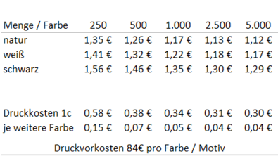 Preisliste Baumwolltasche Classic 38x42 cm mit Bodenfalte mit kurzen Henkeln mit Logo