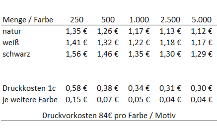 Praktische Baumwolltasche Classic ca. 38 x 42 cm mit Bodenfalte und mit kurzen Henkeln.erhältliche Farben: weiß, natur oder schwarzGröße der Tasche: ca. 38 x 42 cmBeschreibung: Henkellänge ca 35 cm und ca. 5 cm BodenfalteMaterial: 100 % BaumwolleGrammatur: ca. 140 g/m²Druckfläche: Siebdruck ca. 30 x 30 cmUrsprungsland: PakistanZertifikatsnummer: OEKO-TEX STANDARD 100Lieferzeit: ca. 3-4 Wochen ab DruckfreigabeMindestbestellmenge: 250 Stück