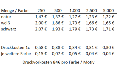 Preisliste Baumwolltasche 50 x 50 cm mit zwei kurzen Henkeln mit Logo