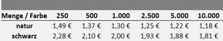 Preisliste Druck Details