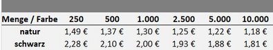 Preisliste Druck