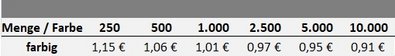 Preisliste Druck Tasche Berlin