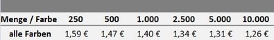 Preisliste Druckkosten