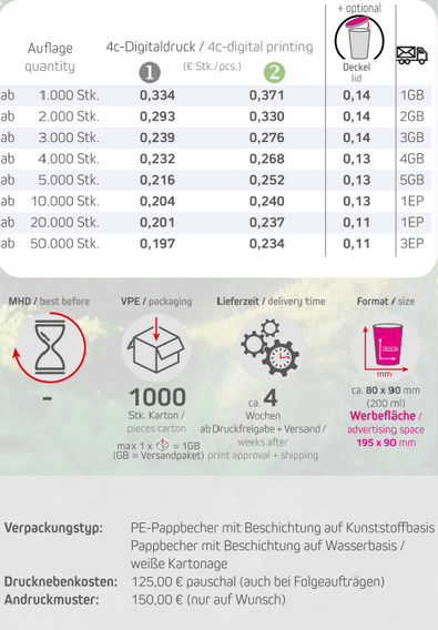 Preisliste Pappbecher 200 ml mit Logo