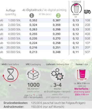 Preisliste Pappbecher 300 ml Details