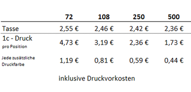 Porzellantasse "Maxim Kaffeetasse" mit 1c-5c Druck. Außergewöhnliche Form, hochglänzend weiß, für Kaffeepad-Maschinen geeignet.Klassisches Erscheinungsbild, produziert in Europa, in vielen Varianten.Material: Kleine Porzellantasse mit außergewöhnlicher Form, hochglänzend weiß, für Kaffeepad-Maschinen geeignetHöhe: 82 mmDurchmesser: 80 mmFüllmenge: 0,2 lDruckfäche:Außen 1 1c – 5c-Druck 40 x 25 mm - Bitte Standskizze anfordern!Mindestbestellmenge: 72 StückLieferzeit: ca. 15 Arbeitstage ab Druckfreigabe