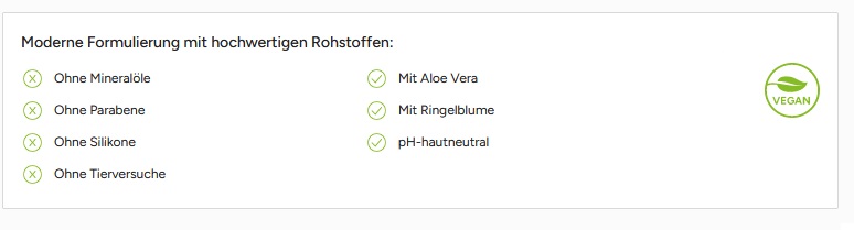 Ringelblume enthält eine Vielzahl natürlicher, entzündungshemmender Substanzen und ätherischer Öle. Aloe Vera wirkt wohltuend kühlend und beruhigend.Beide Wirkungsweisen vereint dieser schnell einziehende Feuchtigkeitsbalsam.